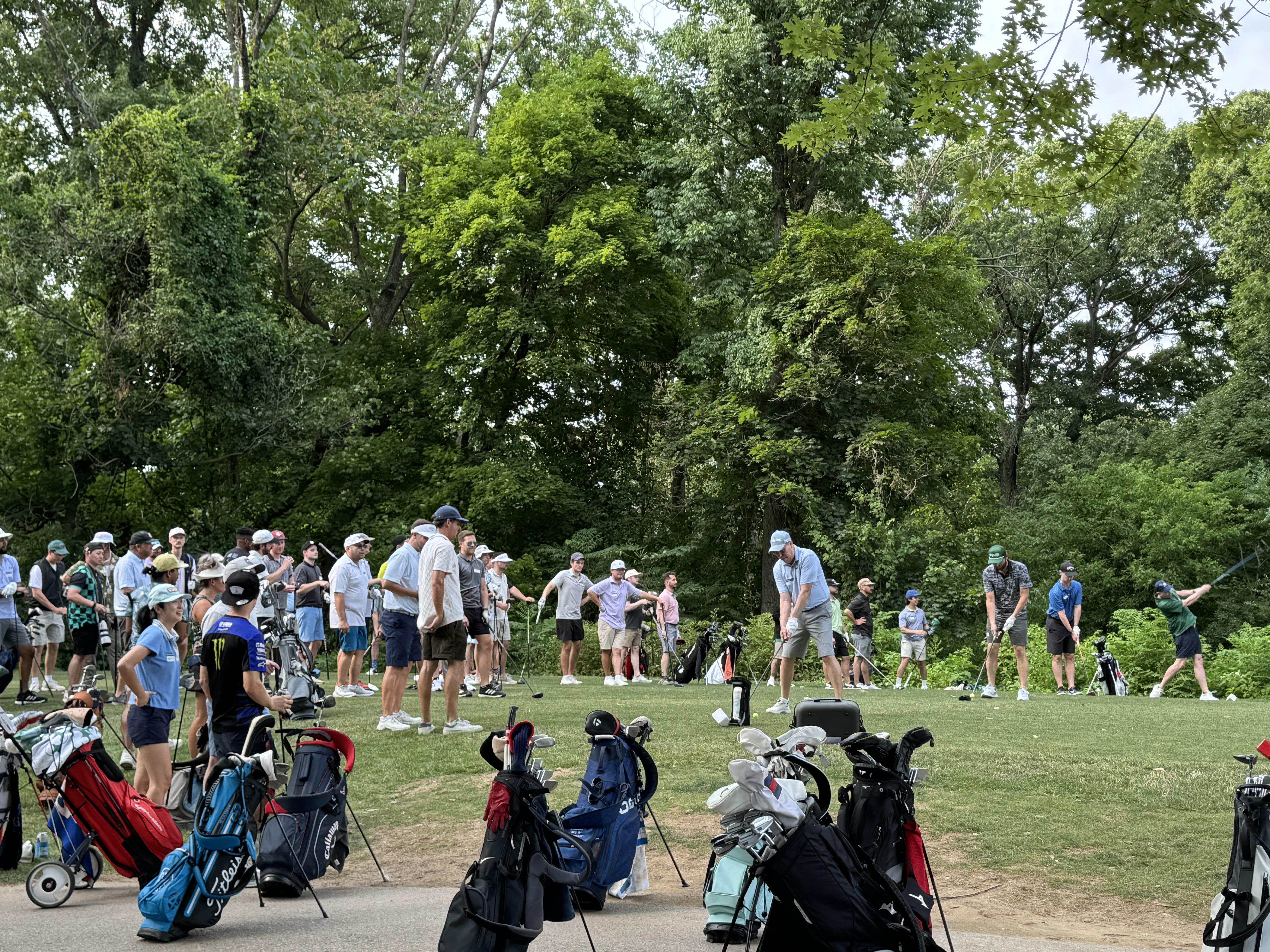 Carrying my golf bag over my shoulder alongside hundreds of fellow golfers and hitting shots in front of 100 people may be as close as I, or others, may get to the feeling of competing in a big tournament, or the shootout of a member-guest. I dare say that our massive team’s score was secondary to the experience, but there were always excitable murmurs as a well-struck shot fell out of the sky towards the hole, and loud cheers when a putt dropped.