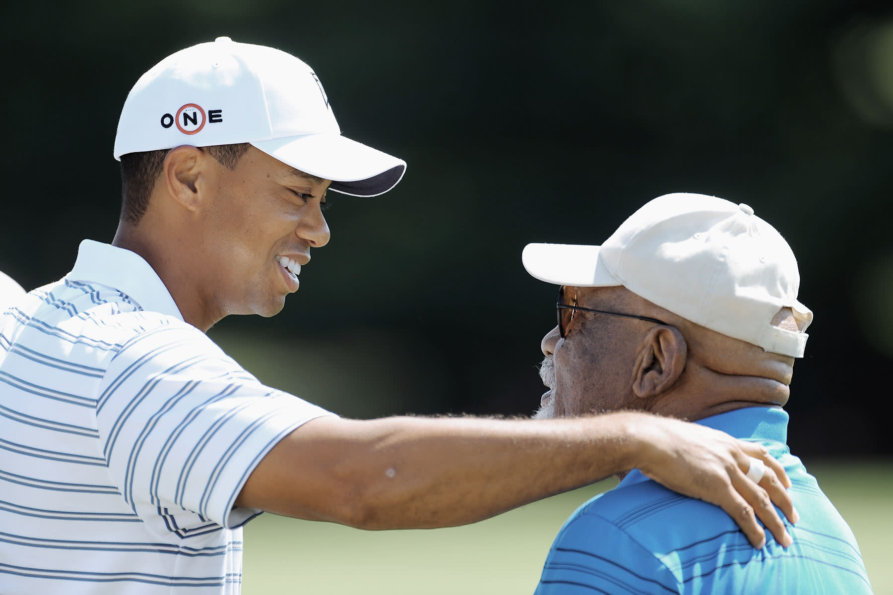 Tiger Woods speaks with Charlie Sifford, the first African American inducted into the World Golf Hall of Fame, during a practice round of the 2009 WGC Bridgestone Invitational.Stuart Franklin/Getty Images